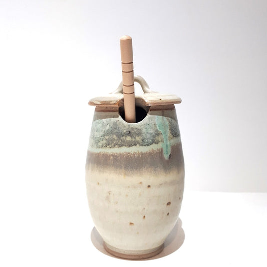 Pottery Garlic Jar - Turquoise & Toast Glaze