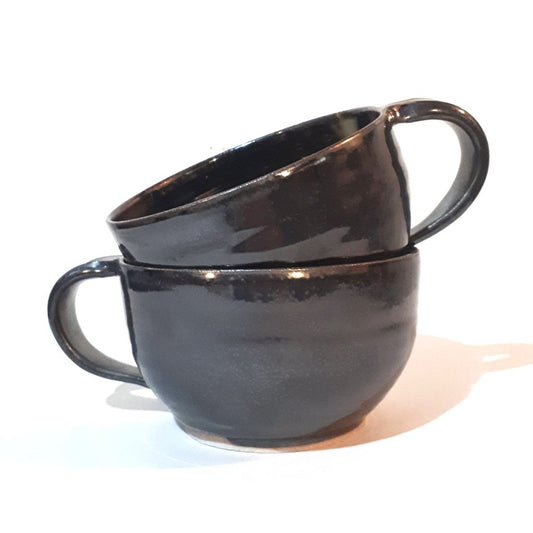 Pottery Wine/ Whiskey Cups - Set of Two - Black