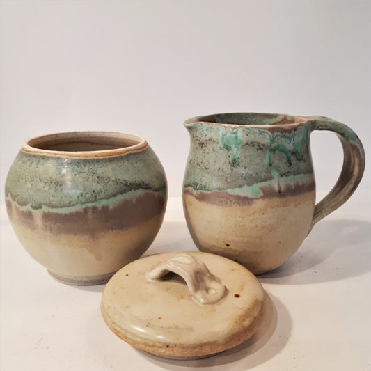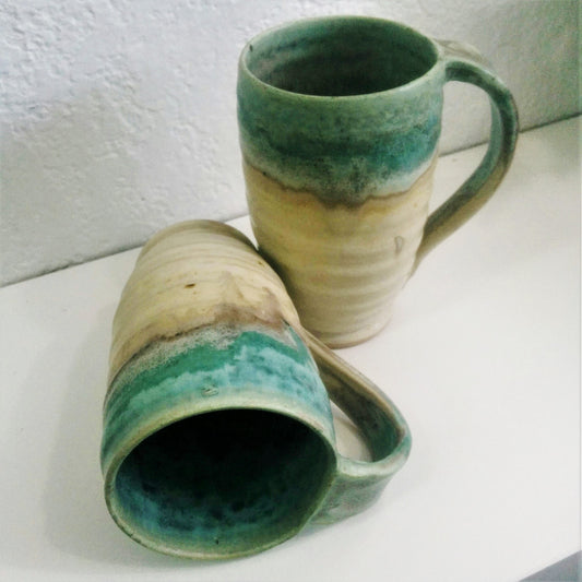 Pottery Mugs - Set of Two - Turquoise and Toast