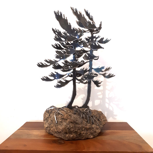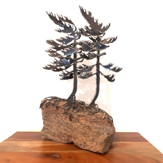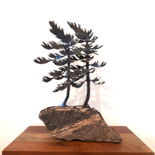Steel Two-Tree Sculpture (300) on Canadian Rock